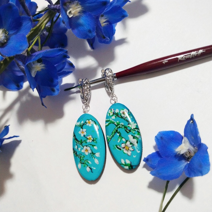 Серьги по мотивам полотна Винсента Ван Гога "Цветущий Миндаль"