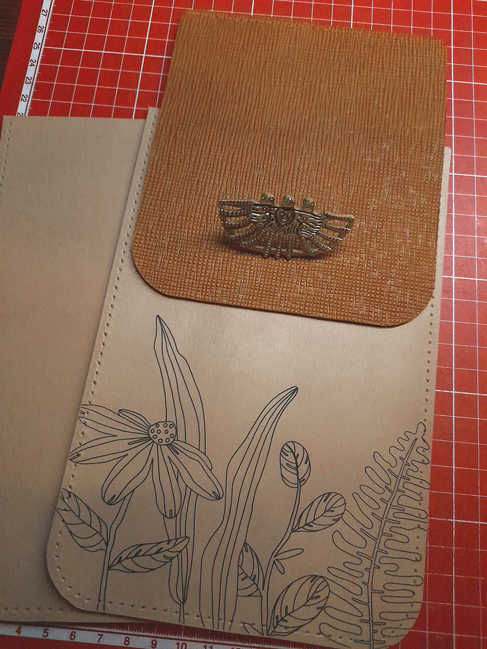 Сумка изготовлена по собственным выкройкам и макетам. Центральным элементом является фигура летящей трехголовой птицы. Фигурка, известная как Птица счастья, является уменьшенной копией бляхи Урало-Сибирского культового литья VIII—X вв, а именно Пермского звериного стиля. В работе использовано 2 вида натуральной кожи, прошивка седельным швом. Внутри один отдел с дополнительным карманом.