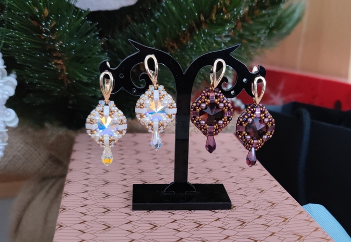 Плетение из бисера металлизированных оттенков и кристаллы дают эффект ювелирных украшений. Так что некоторые даже думают, что они сделаны из металла :) Хотя и бисер с бусинами, и кристаллы - стекло.