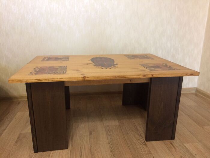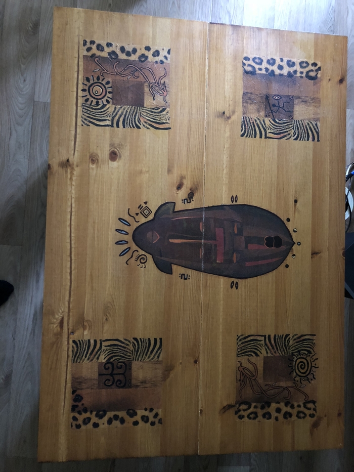 Долго пытались подобрать идеальный удобный журнальный столик по запросам моей девушки. Чтоб вот и по габаритам был идеален и в стиль комнаты вписывался. Искали несколько месяцев, потом было принято решение сделать его самим (ну в основном мной). Я продумала конструкцию, визуализировала все в 3d на компе, получила одобрение и поехала закупаться материалами. Столешница 2 мебельных щита, ножки доски сосновые. Стол покрыт морилкой, сделан декупаж из салфеток и всё сверху еще покрыла лаком яхтенным по моему. Самое сложное было это имея на руках только дрель (тогда я начала думать, что фрезер, это офигенно крутая штука) высверлить отверстия под эксцентрики чтоб сохранить максимально эстетику) Ну получилось вроде ничего… и крепенько, что самое главное)