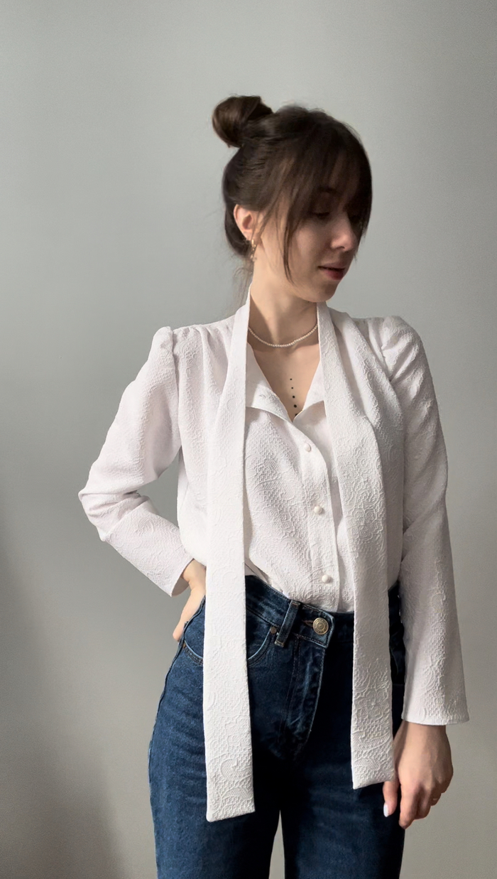 Так как забрала уже остатки, то хватило бы только на блузу, поэтому я начала моделировать и кроить