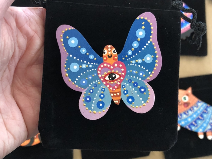 Не подумала, что бабочке нужно сделать усики, поэтому теперь у меня лысая бабочка, зато с красивым глазом.