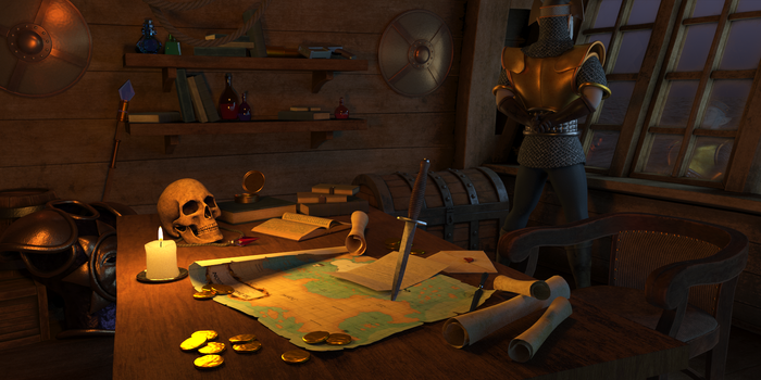 В дополнение: крупный статичный рендер катсцены. Может быть использован как обои.Карта, лежащая на столе у Кастора. Автор карты: MarkonPhoenix
