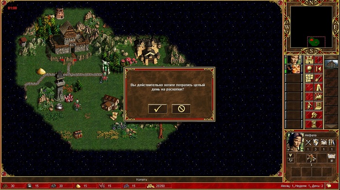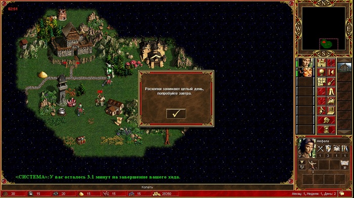 Итак, мы играем за Темницу, находимся на траве (родная местность для Замка и Оплота), наш противник - герой Замка.