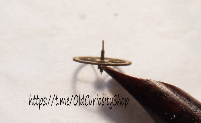 Кроме ослабленной резьбы на заводной головке (это лечится), убитой напрочь оси баланса (нужно искать донора) у Симы была, к тому же, искривлена ось секундного колеса.