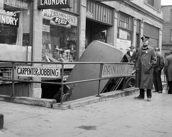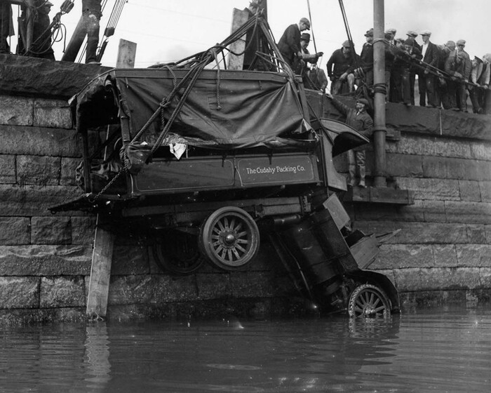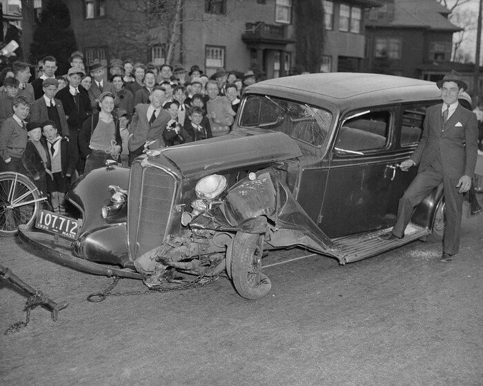 Автор всех фото Лесли Джонс, известный фотожурналист, работавший в Boston Herald-Traveler с 1917 по 1956 год. Джонс документировал повседневную жизнь Бостона и его окрестностей, и сохранилось около 40 000 его негативов. Но центральное место в его работе занимала фотохроника автоаварий, с 1930 г. он сделал несколько тысяч таких снимков.