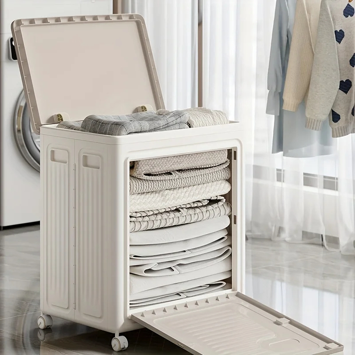 Ручки укреплены, что облегчает переноску даже при полной загрузке. Корзина подходит для ванной комнаты, спальни или прачечной, вписываясь в любой интерьер благодаря лаконичному дизайну. Лёгкость конструкции делает её удобной для частых перемещений, особенно в небольших квартирах.