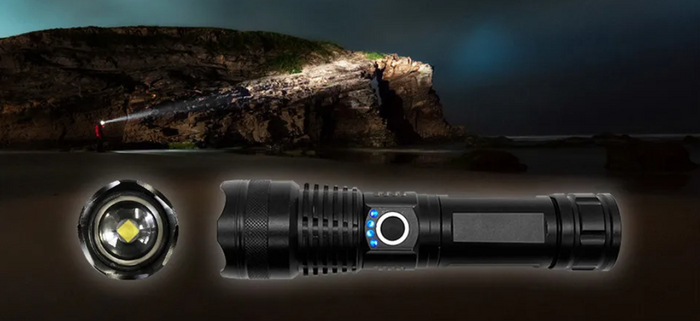 Мощный аккумуляторный фонарь с функцией зума обеспечивает яркое и регулируемое освещение, подходящее для самых разных условий.