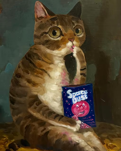 Постер в стиле нарисованной на холсте картины 40x60 см. с забавными кроликами, кушающими тортик. Есть и других размеров. Ссылка на постер.