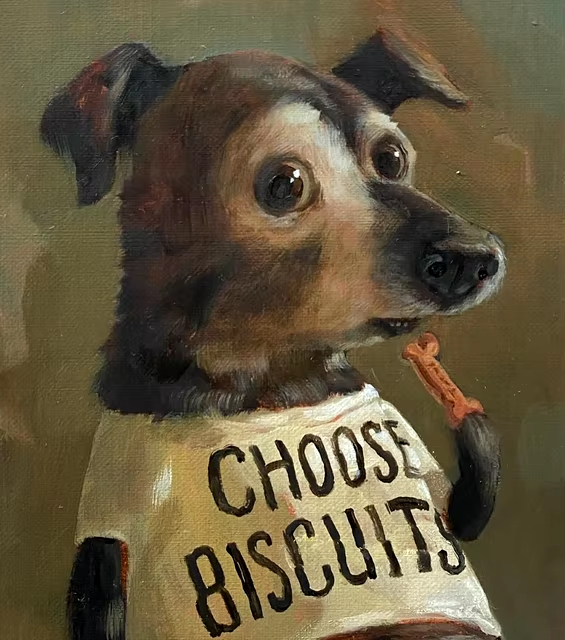 Собачка кушает печеньки из баночки. Ссылка на постер