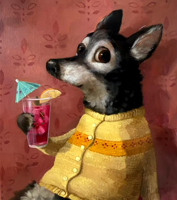 Маленькая собачка пьёт коктейль. Ссылка на постер