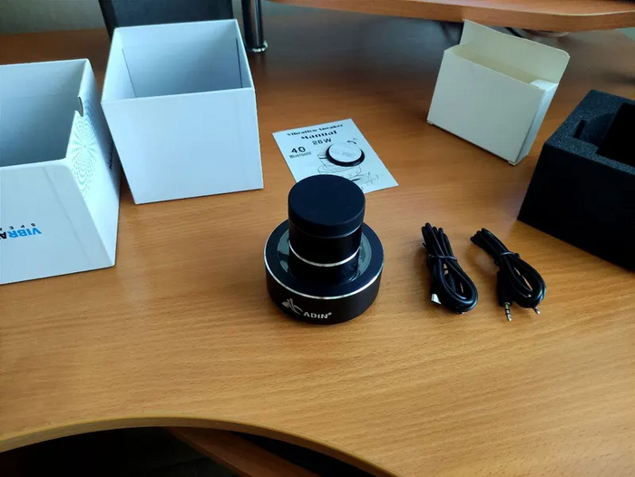 Данное устройство предназначено для генерации звука путем вибрации, при этом динамиком может стать любая плоская поверхность. С данным прибором любая ровная твердая поверхность может стать спикером и передавать кристально чистый звук по всей своей окружности, распространяя звука одинаково по всей плоскости. Стоит такая 4 650 руб. Ссылка на неё.