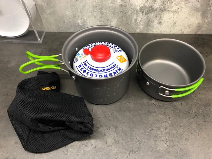 Ультралёгкие мини котелки со складными ручками. Стоит набор из 2х штук 1 470 руб. ссылка на них