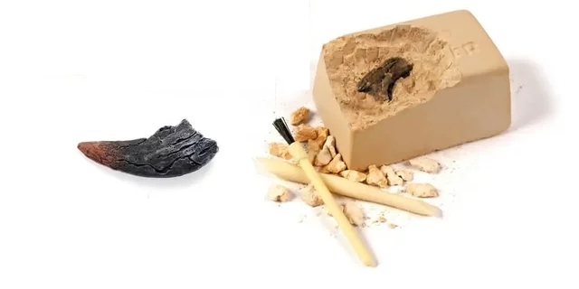 Интересный подарочный набор для раскопок останков костей динозавра, затвердевших в горной породе. В наборе идёт всё необходимое: защитные очки, молоточек, зубило и щёточка. Ссылка на набор. На выбор доступно множество видов динозавров.