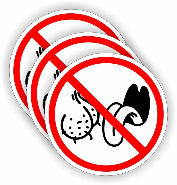 Наклейка 'без пердежа' диаметром 12 см. Предупреждающая. Ссылка на неё