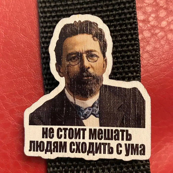 Значок брошь из дерева Чехов. Не стоит мешать сходить с ума. ссылка на него