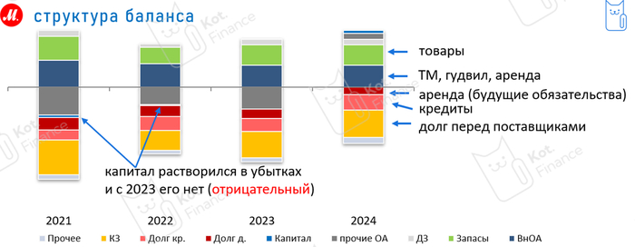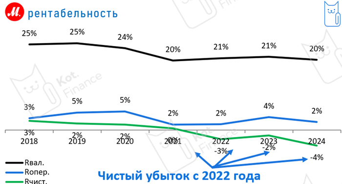🧮2024 год компания закрыла очень плохо. По РСБУ выручка выросла на 12% до 242,9 млрд. рублей, но финансовый результат составил минус 13,4 млрд. рублей, то есть компания сработала в убыток. На убыток повлияли активная инвестиционная программа компании, в рамках которой за год заемные средства выросли на 47% до 456 млрд. рублей, а за ними подтянулись и процентные расходы.