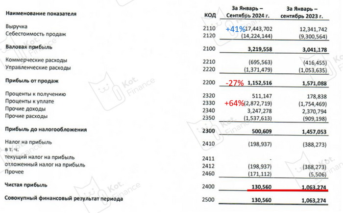 Чистый за последние 3 года уменьшился на 93,5% с 141 млрд ₽ до 9,2 млрд ₽ на конец 2023 года.