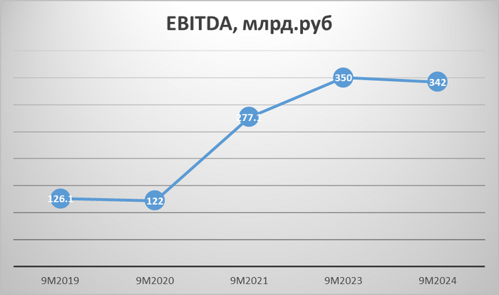 В целом ебитда растёт, но в 2020 году она просела по понятым причинам. В 2024 году просадка обусловлена, главным образом, курсовыми разницами.