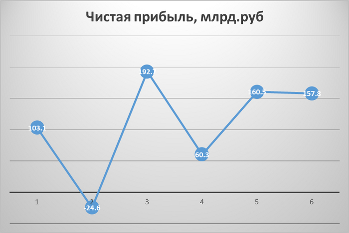 Гораздо интересней смотреть на динамику чистой прибыли, тем более, что именно из неё платятся дивиденды: