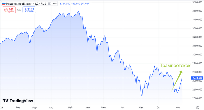 Напоминаю, что фундаментально по рынку ничего не меняется, весьма вероятно, что ЦБ снова повысит ставку в декабре. А значит, для крупного капитала рынок акций, как и прежде, остается менее интересным, чем рынок облигаций. И эта эйфория в акциях, которую мы видим в последние дни не подкреплена, действительно, существенными экономическими изменениями, а лишь позитивными ожиданиями, которые в итоге могут оказаться надуманными. Пока это просто закономерный технический отскок.