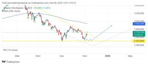 Индекс Мосбиржи показал рост после 5 недель снижения. Итоговое изменение IMOEX с 2 594 до 2 734. Спасибо Дональду Всемогущему, оттолкнул акции от дня. Наш слоняра!