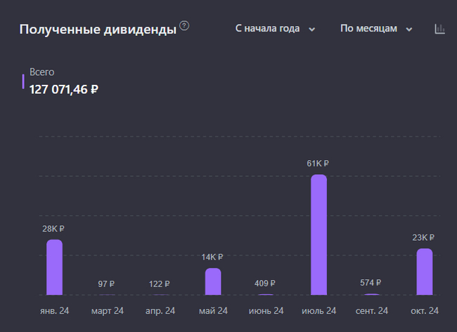 Капитал на данный момент 1,475 млн рублей и за 10 месяцев 2024 дивидендами получил 127 000 рублей.