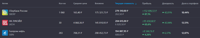 Мой портфель (ТОП-3 акции)
