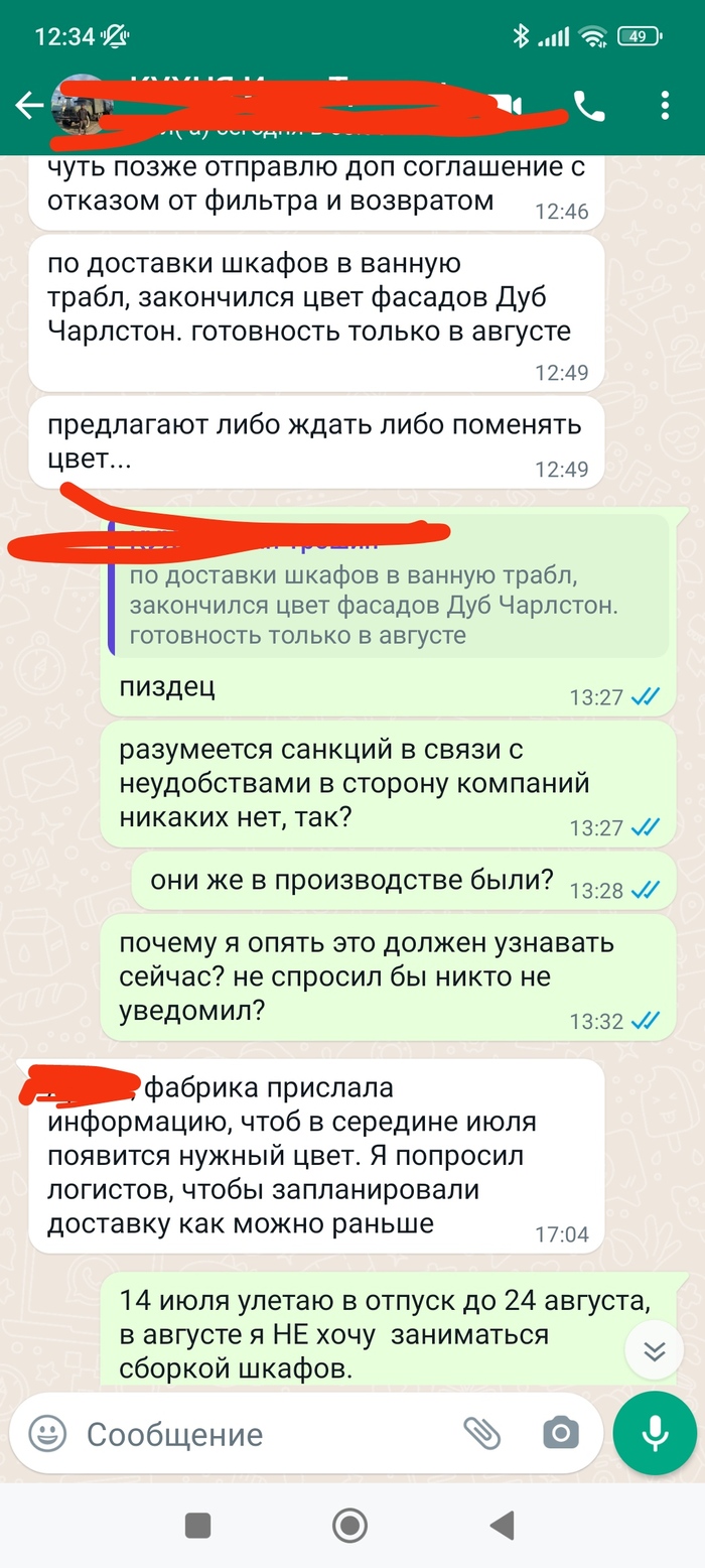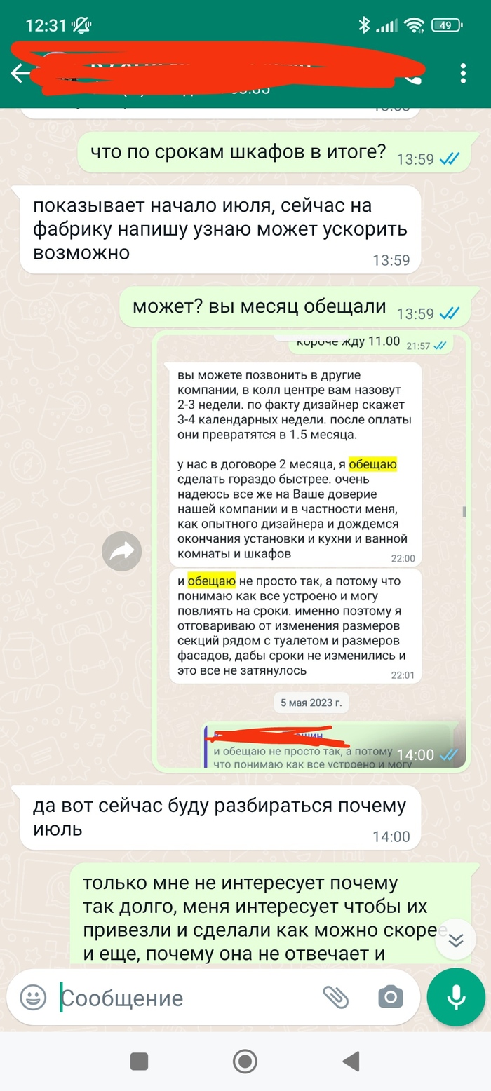 Заказал в мае шкафы для ванной. по договору их должны были сделать до 5 июля, менеджер обещал к началу июня.