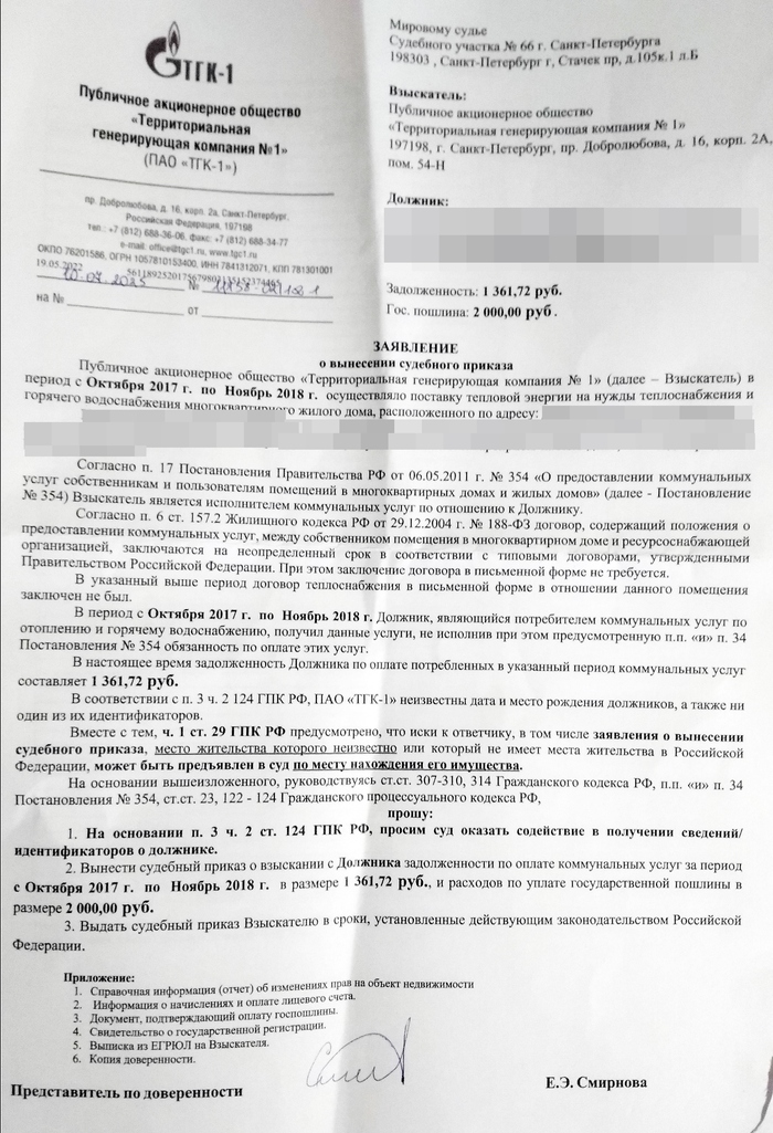 Добрый всем день. Нужен совет. До ноября 2022 года деньги поставщику отопления и горячей воды переводились по розовой квитанции через управляющую компанию, а с ноября собственно перевели на прямые платежи. И с первой же квитанцией от ТГК пришла бумага о долге за 2017-18 года, хотя всё платилось вовремя и никаких долгов не было. В ответ через личный кабинет на сайте ТГК было написано обращение с фото квитанций и чеков за этот период, что все было оплачено через УК. Считал вопрос решенным. Но сейчас пришло письмо с заявлением о вынесении судебного приказа