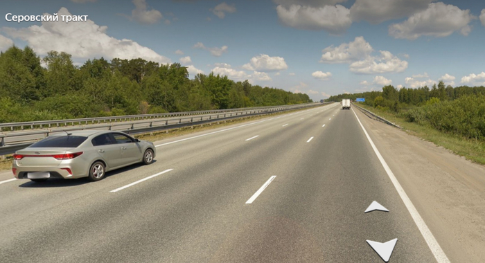 В Екатеринбурге есть дорога, носящая гордое имя - Серовский Тракт. 3 полосы в каждую сторону, разделительный барьер, небольшая колейность, да и чего греха таить не самая лучшая дорога но ... в общем и целом ничего критичного. Тот же тракт, дальше на 120 км в значительно худшем состоянии да еще и просто двухполоска на которой долбятся нещадно. Каким то умным людям пришла в голову мысль ограничить скорость на выезде из города, на протяжении 18 км хорошей дороги до 70 км. На городском портале Е1 вышла статья, что это забота о водителях, бьются бедные, будем ремонтировать. Выглядит эта дорога смерти вот так.
