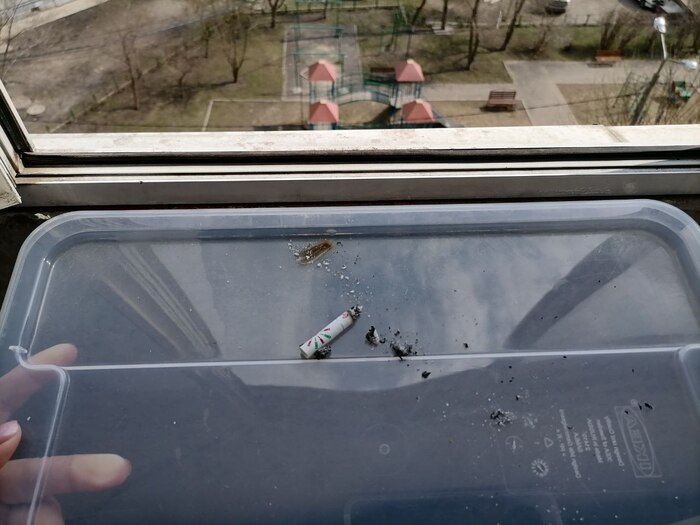 Живу на 6 этаже в десятиэтажке. На улице +26, соответственно окна открыты. Сейчас обнаружил окурок у себя на балконе. Прожёг пластиковую крышку контейнера. Относительно свежий. В левой части тоже есть окно, убирался еще один лежал непонятно сколько. Что делать? Как с этим бороться?