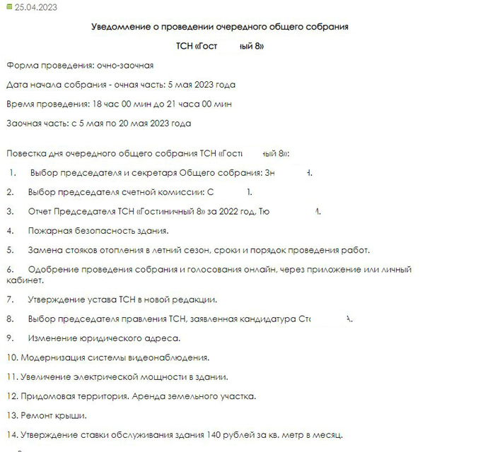 А ещё, "аренда земельного участка". Участок внутри двора весь принадлежит предыдущей УК-застройщику (который не застроил, а перестроил дом под апарты). За него хотели ещё по 1.млн в месяц аренды. Даже на прошлом "собрании" все немногие были против такой щедрости. По идее после этого та компания не могла его содержать и за неуплату он должен был из аренды уйти государству. Сейчас соседний дом, который строят по реновации как-то арендовал часть этого участка (небольшую), хотя по идее он после неоплаты должен был перейти государству. Как сказали строители (до которых мы докопались), они арендовали это "у дома".
