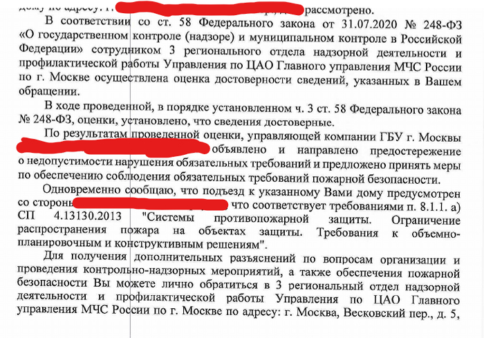 Но что если пожар будет именно со стороны моей квартиры, к которой пожарные не смогут подъехать? На это ответа нет.