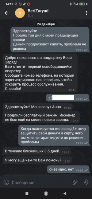 В конце декабря 2022 мне написала Анастасия. У нее возникли проблемы с сервисом «Бери заряд!» и ей нужна была консультация.