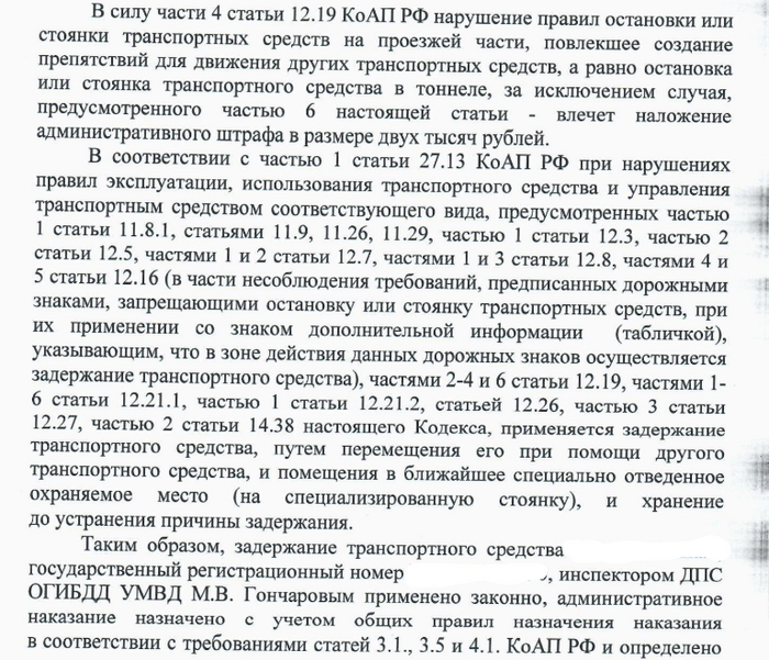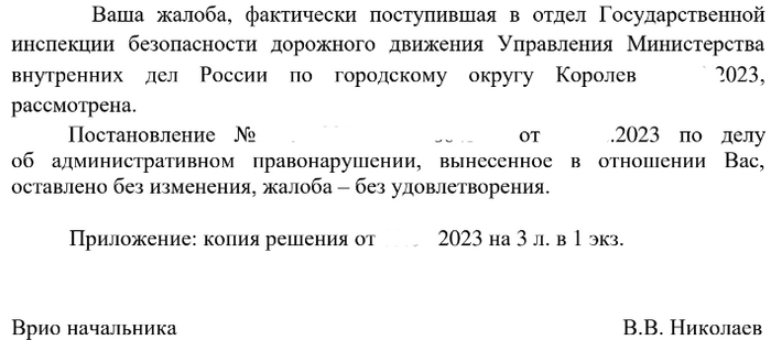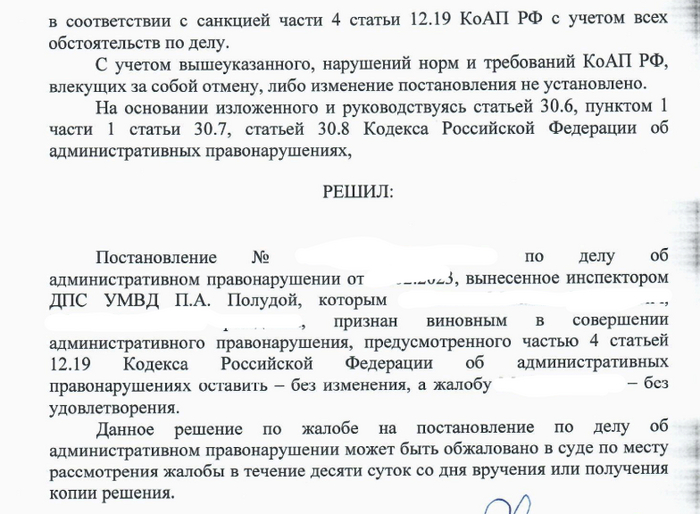 Короче говоря, они проигнорировали мою аргументацию по поводу выезда со двора, а потому, основываясь на словах инспектора - оставили решение без изменений.