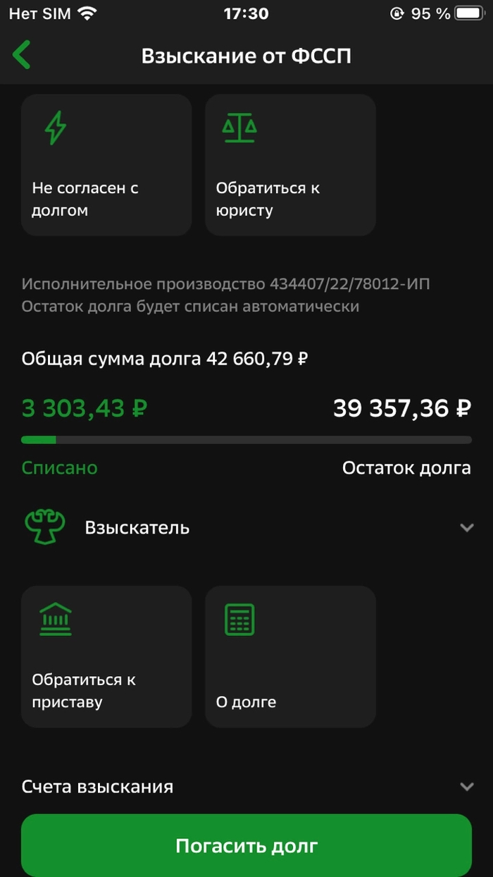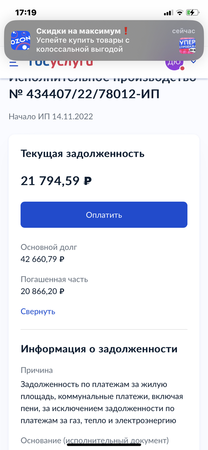 Добрый вечер, пикабушники. Пост первый, не судите строго. Не ради рейтинга, нужен совет. На моей квартире, в которой я прописана, но не живу (проживает моя мама и брат), числиться задолженность за газ, тепло, теплоэнергию на сумму 42660 с копейками. Наложили арест на мою карту сбербанк, с нее списали 3303р и долг стал 39357 с копейками. Далее наложили арест на заработную плату. За ноябрь декабрь удержали 16589, за январь удержали 32641, за февраль 7955. То есть сумма уже значительно выше удержана, чем нужно. Документы прилагаю. Причем на госуслугах долг выглядит вот так(скрин ниже). Я написала письмо в фссп через госуслуги и приложила туда все выписки по зарплате и скрин из банка. Подскажите пожалуйста, что вообще нужно делать, как добиться перерасчета и возврата излишков?