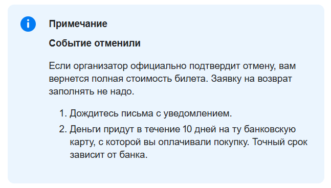 UPD: В их же правилах возврата, черным по голубому написано, что заявку заполнять не нужно, в случае отмены мероприятия.