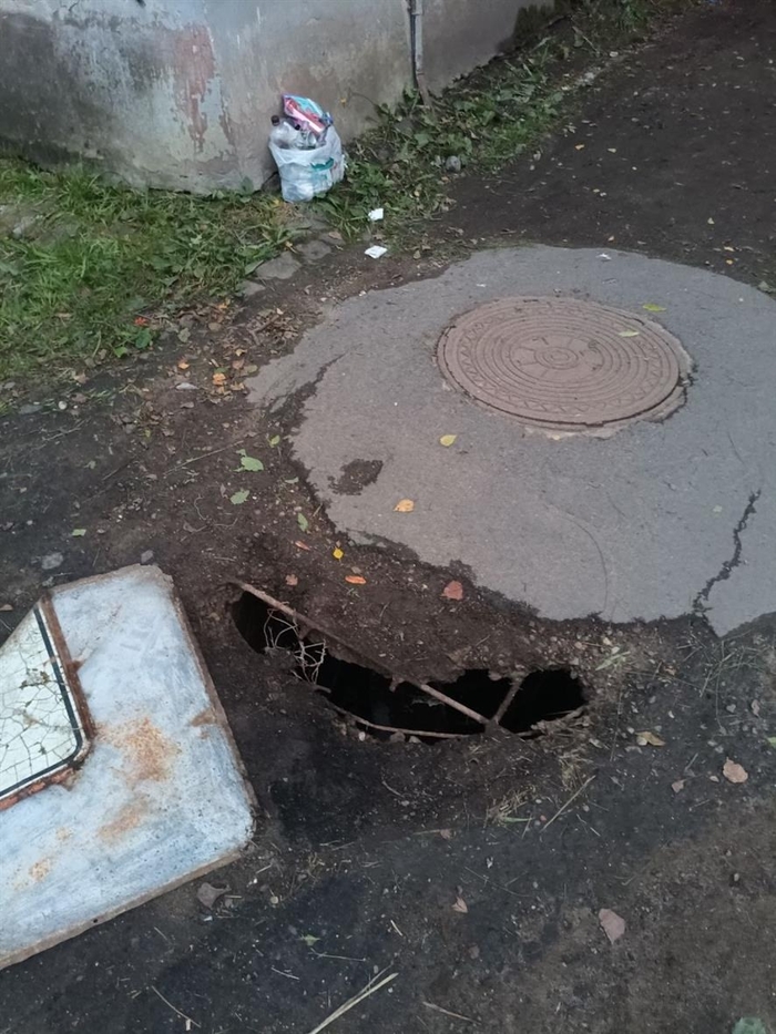 Сообщаю о наличии по адресу: г. Углич, ул. Никонова, в районе дома № 11, на тротуаре, ведущем к детскому саду, смертельно опасного объекта — полностью разрушенного и открытого колодца инженерных сетей с обрушенной плитой перекрытия и торчащей арматурой.