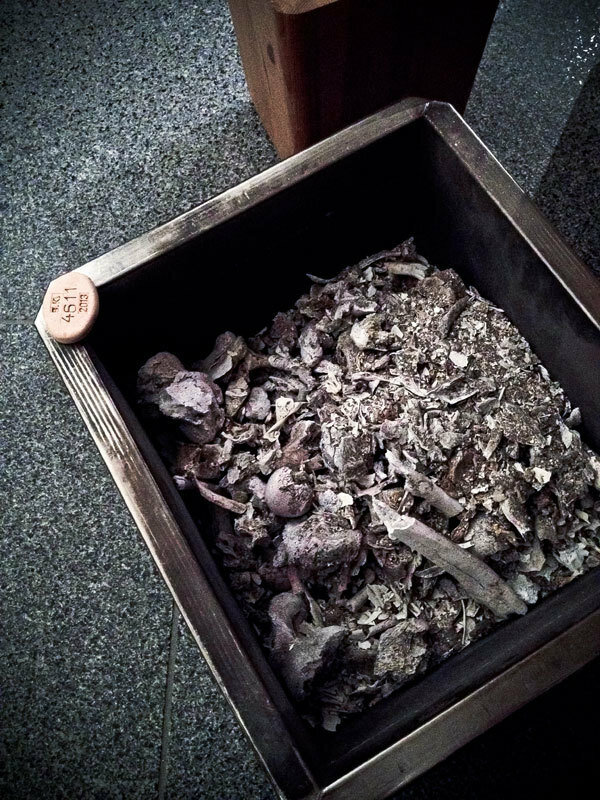 Первой урну с содержимым – недогоревшие берцовые кости и черепа – нашла подруга. Ее глаза бежали впереди неё на меня, а губы шептали на весь крематорий: бля, там черепа, пепел, такие кадры!