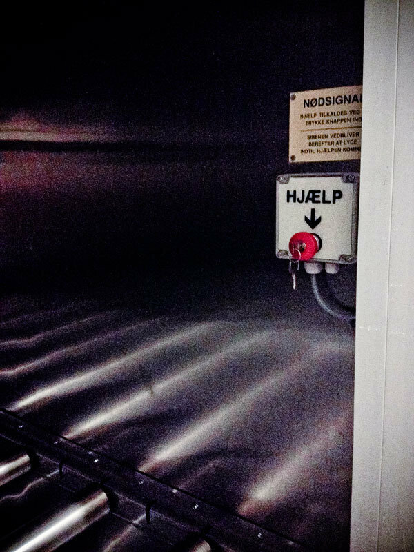 Приёмная для покойников, умерших не в Дании. Датчане очень осторожны в плане чужеродных бактерий, потому труп обмывают и совершают дополнительные необходимые процедуры, согласно инструкции для таких случаев – поэтому отдельно и со средствами защиты.