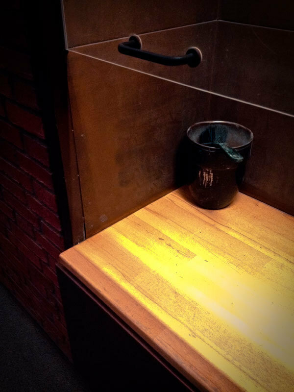 Комната для родственников, из стеклянных дверей которой они могу наблюдать за процессом кремации. Всё что здесь есть – на столике экстрамягкие салфетки duni luksus.