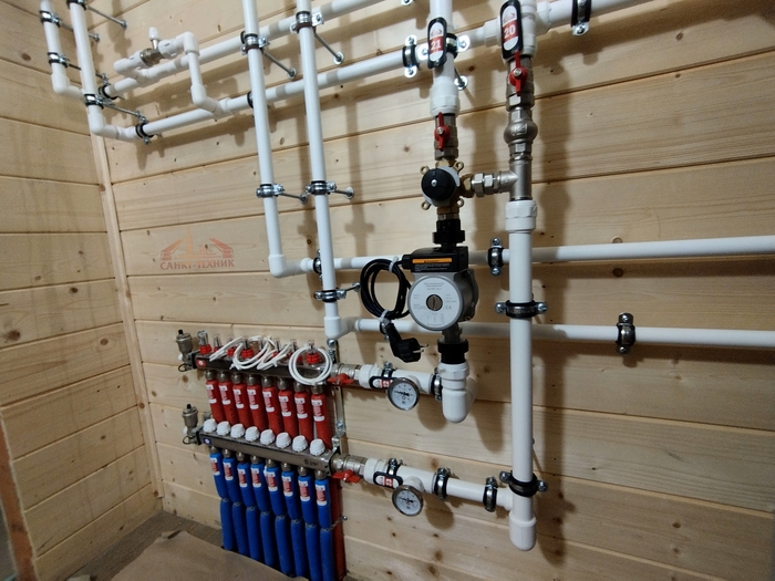 Вот и очередная котельная, смонтированная нами в Московской области. Обслуживает стандартный каркасный дом, где для отопления водяные теплые полы поселились на 1 этаже, а радиаторы обосновались на втором.