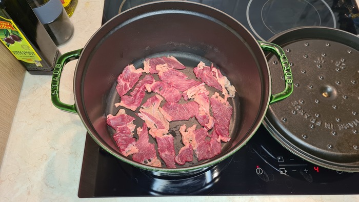 2)Семгу или другую красную рыбу нарежем кусочками. Можно просто купить замороженную горбушу, запеченная в сливочно-яичной массе она будет ничем не хуже форели или семги