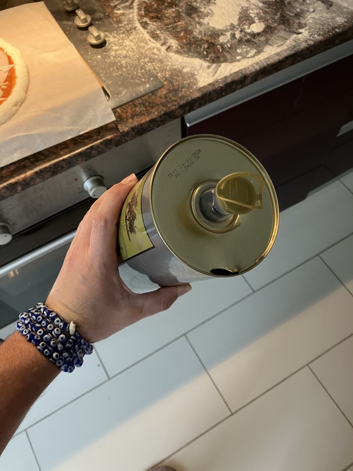 Блять. Оливковое маслишко закончилось. Пришлось консервным ножом проковырять дырку и додоить остатки.