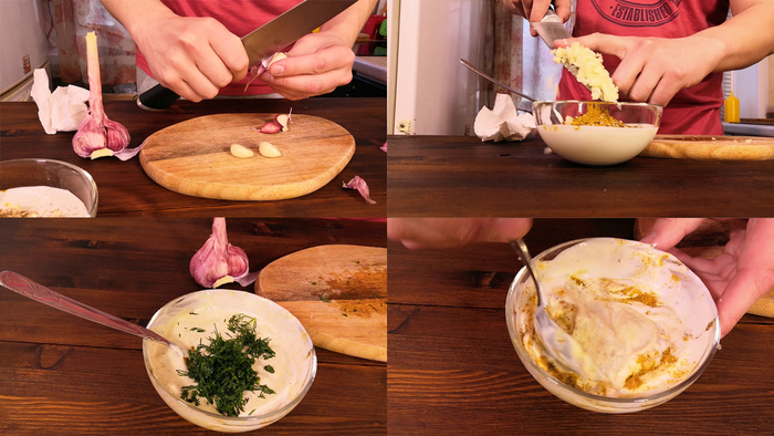 Чеснок - по вкусу, у меня 5 зубчиков.
