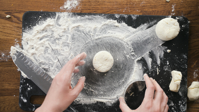 Все были нежными с тестом? Если да, приступим к следующему шагу: выкладываем тесто на силиконовый коврик на противень, распределяем массу по всей площади и ставим в разогретую духовку.