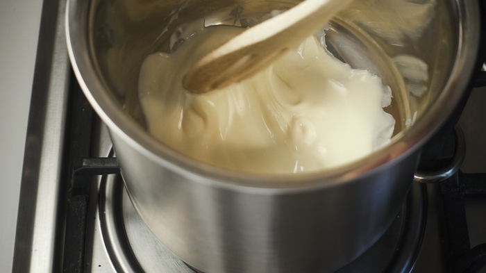 Отделяем желтки от белков, взбиваем 3 желтка и 60 гр сахара в белый тягучий крем. Работы миксера на 3 минуты.