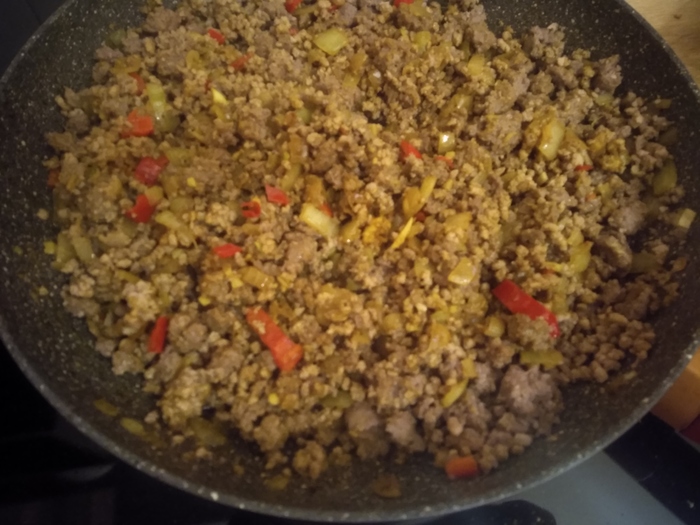 Как вода в кастрюле закипела, то снимайте пену и закидывайте почти всё, что подготовили(кроме трёх долек чеснока). Перемешали, убавили огонь до минимума и накрыли крышкой. Пусть бурлит себе еле-еле часа полтора.