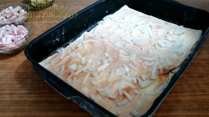 Для начала необходимо нарезать лук тонкими полукольцами, затем сложить его в миску, вылить туда уксус, добавить соль, мёд, и хорошенько размять руками.